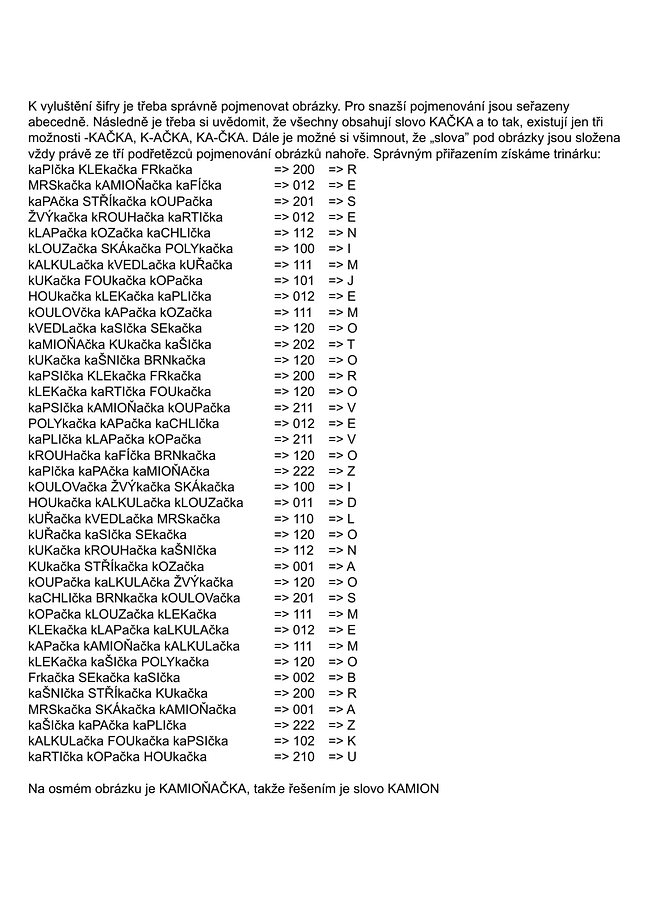 K vyluštění šifry je třeba správně pojmenovat obrázky. Pro snazší pojmenování jsou seřazeny